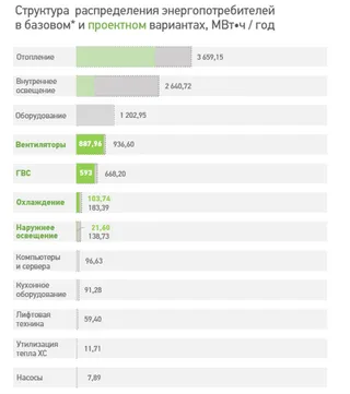Другие энергоэффективные решения Принятые решения, позволяющие сократить потребление энергии: рекуперация тепла в вентиляционных системах; применение светодиодных светильников для наружного освещения; применение эффективной водоразборной арматуры.