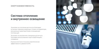 Энергоэффективное освещение Экономия на внутреннем освещении достигнута благодаря использованию энергосберегающего освещения.