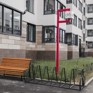 Обустройство велоинфраструктуры Всего на территории комплекса установлено 128 мест для краткосрочного хранения велосипедов для жителей и гостей комплекса. Для сезонного хранения жителям доступны удобные колясочные, расположенные на первых этажах каждого корпуса.