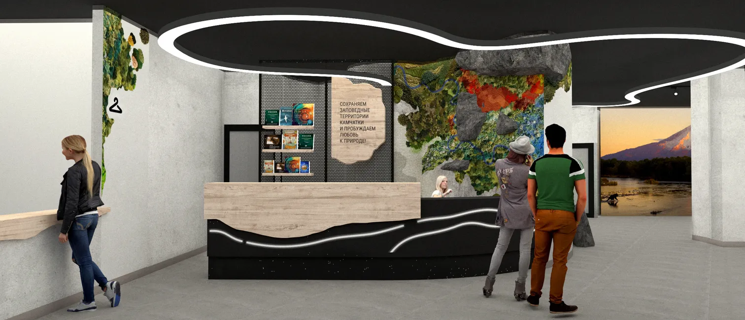 Кроноцкий заповедник – один из старейших заповедников в России, главной целью которого является сохранение уникальных территорий Камчатки и развитие бережного отношения к природе. Оба здания – визит-центр и административный корпус – располагаются в городе Елизово, который можно назвать воротами Камчатки: именно здесь начинается знакомство с удивительным Камчатским краем. Каждый из двух объектов впитал в себя дух места: свободные пространства внутри с нестандартными большими окнами, светлая цветовая палитра фасадов и натуральные материалы в интерьерах дают возможность почувствовать себя посреди камчатской тундры. Большая зеленая зона, интерактивные стенды для знакомства с регионом и заповедником, пешая доступность до общественного транспорта и необходимых сервисов позволяют создать идеальные условия для исследования растительного и животного мира, экологического просвещения и популяризации устойчивого туризма. А такие технические решения, как механическая вентиляция, энергоэффективное наружное и внутреннее освещение позволяют поддерживать комфортную среду для каждого человека, который решит посетить это пространство.