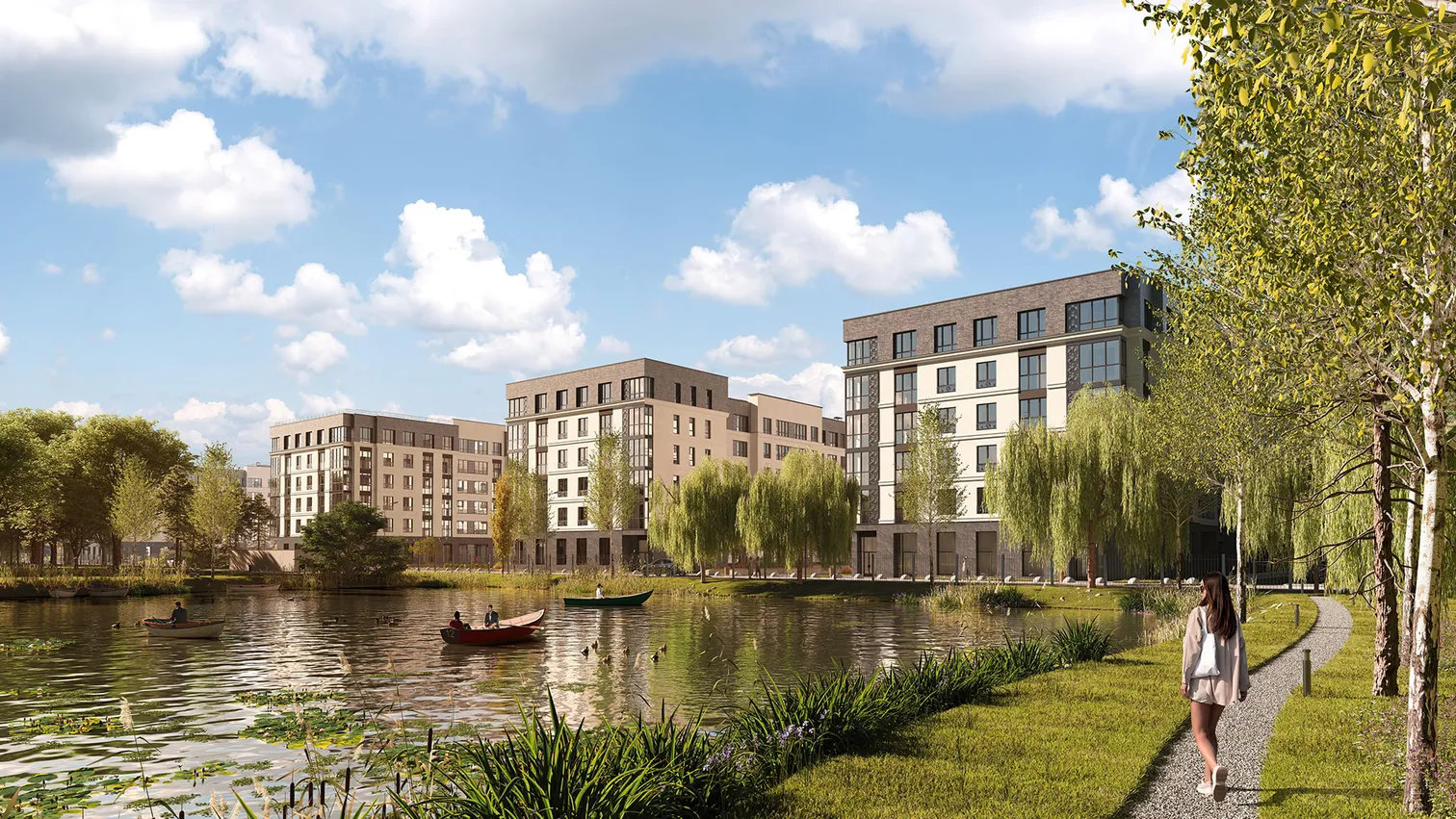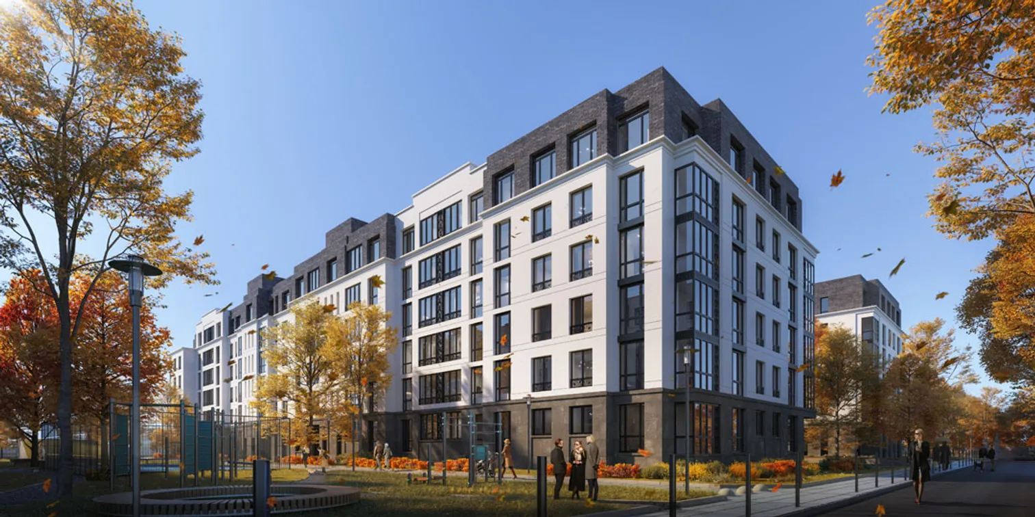 Жилой комплекс состоит из четырех корпусов высотой от четырех до шести этажей. Четыре здания образуют уютный малоэтажный квартал в неоклассическом дизайне, который распахивается в сторону городского парка.